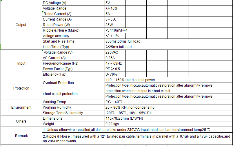 | 产品名称: | 5V 5A 25W普通开关电源 |